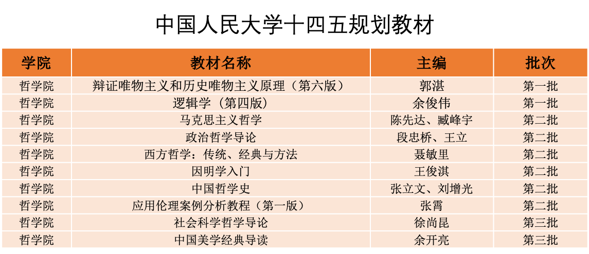 持续开展“哲学的星空——性爱电影 哲学前沿讲座系列”“思维的此岸:当代哲学热点问题”“‘哲学+’的视界PPE系列跨学科对谈课”“‘融通与创新’PPE高阶研讨课”“全英文系列讲座:中国哲学与当代视界”“政治哲学前沿系列讲座”“古希腊哲学工作坊”等系列创新课程。10部教材入选学校十四五规划教材。