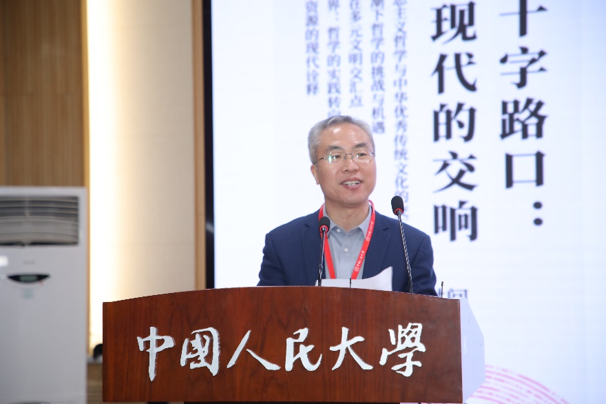 臧峰宇指出,今天中西文化比较在学术层面上更多体现为合作式对话、互镜式学习、共生式融通,在文明交流互鉴中使我们更好地理解民族文化自我,在对话与会通中拓展了文化传承发展空间,这一空间的实践场域是传承发展中华传统文化的中国式现代化,确证了“第二个结合”的现实必要性。臧峰宇表示,今天我们要在智能革命的浪潮中深入探讨科学技术与社会发展的辩证关系,为人类未来发展贡献哲学智慧。最后,臧峰宇为同学们提出三点希望:一是发扬“板凳甘坐十年冷”的治学精神,做洞察时代之变的思想者;二是树牢“勇立潮头敢为先”的创新意识,做引领时代之先的探路者;三是强化“大道同行天地宽”的协作思维,做破解时代之问的研究者。