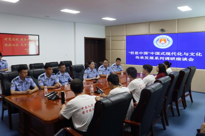 7月4日下午,调研团前往老虎哨边检站,访谈老虎哨分站民警职工代表。在这里,调研团师生进一步了解边检站的历史沿革、组织架构、民族构成以及文化建设等方面的情况,被边检民警卫国戍边的爱国热忱深深感染。